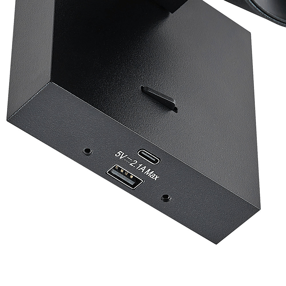 reading lamp CAN TILT SQUARE USB square, with switch, with USB charging function, cardanic swivelling GU10 IP20, black