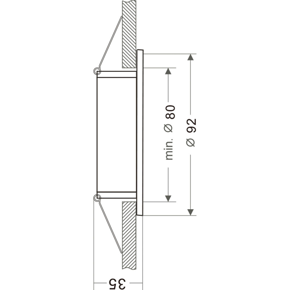 The cutout diameter of the recessed ring is 8cm and the size of the ring is Ø 9.2 / H 3.5 cm. With a GU5.3 / MR16 base, this recessed ring is compatible with dimmable light sources that provide direct light distribution. The recessed ring is IP20 protected and suitable for indoor use.