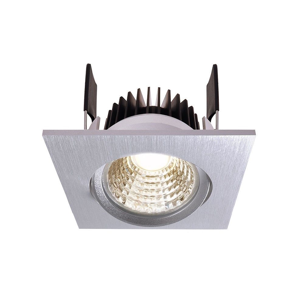 Recessed LED ceiling luminaire COB-68-350mA-SQUARE, current constant, 6W, 2700K, 45°, brushed silver