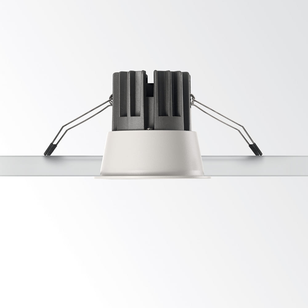 Thanks to the recessed CREE COB LED module and color consistency (MacAdam) of 3 SDCM, the luminaire offers a very low tolerance of deviations in light color. It is switchable with an ON/OFF driver included and can be expanded with dimmable drivers (1-10V/DALI). The luminaire is suitable for recessed mounting in cavity and panel ceilings in dry indoor areas.