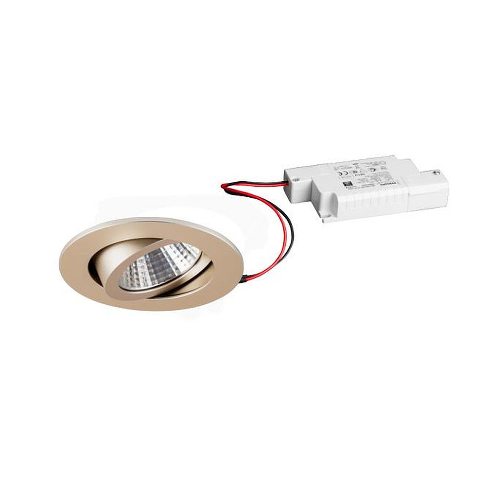 Recessed LED spot set SEVEN-R incl. converter, IP20, round, 230V, 7W 2700K 740lm 38°, swivelling 30°, matt champaign