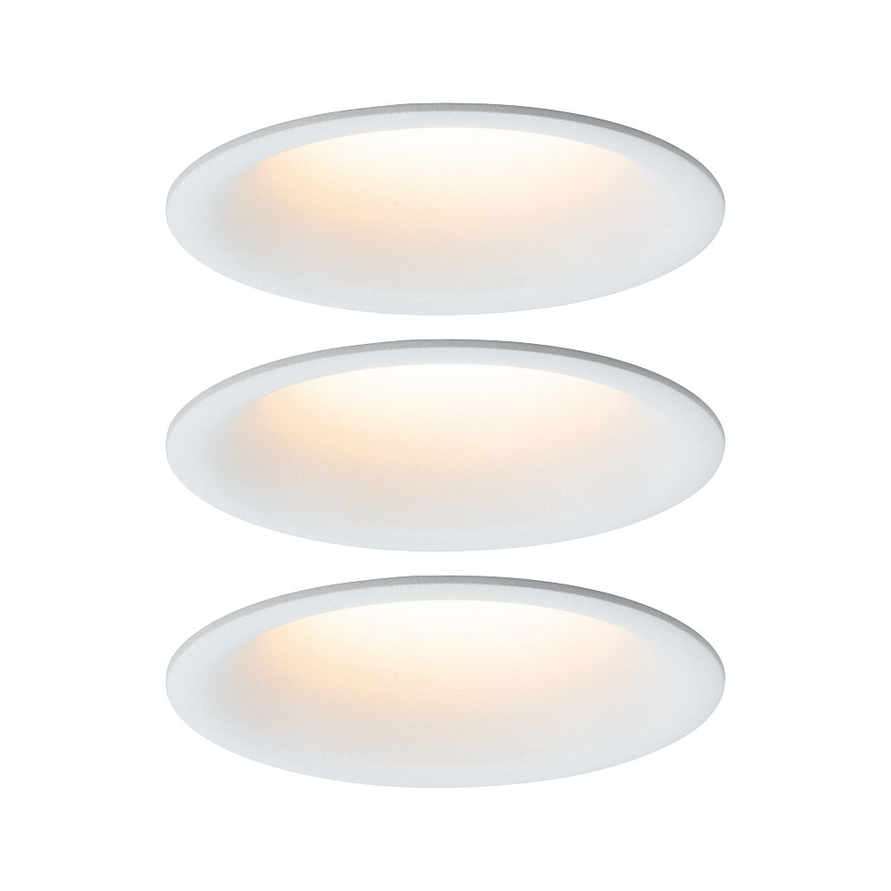 3-piece LED recessed light set CYMBAL COIN Dim-To-Warm, IP44, fixed, glare-free, 230V, 6.8W 2000-2700K 480lm 45°, white matt