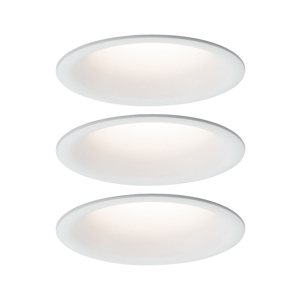 The 3-piece LED recessed lighting set CYMBAL COIN from Paulmann is ideal for indoor use. The fixed lights have a glare-free light emission angle of 38° and an operating voltage of 230V~. With a total power consumption of 19.4W, the lights provide pleasant illumination in your space.