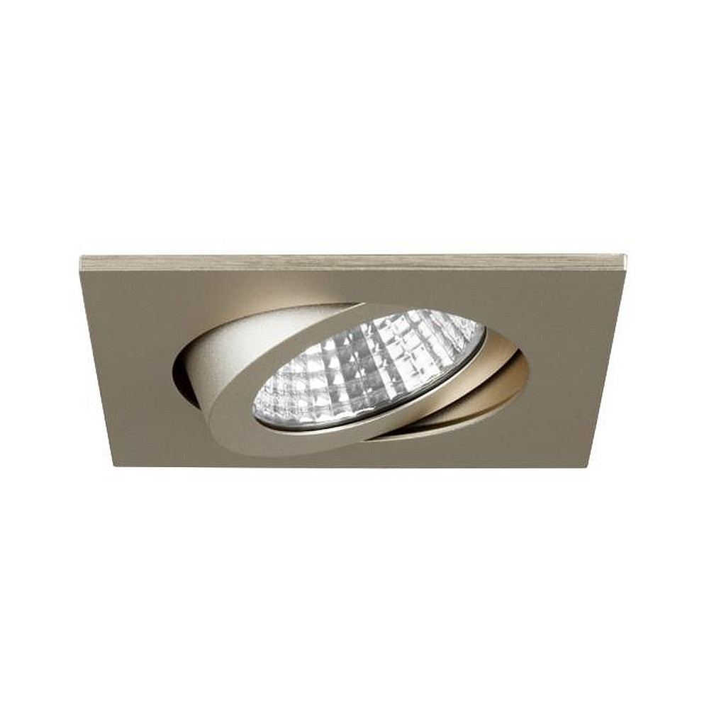 Recessed outdoor LED spot, IP65, square, 8.2 x 8.2cm, Plug&Play 350mA, 6W 3000K 650lm 38°, swivelling 30°, matt champaign