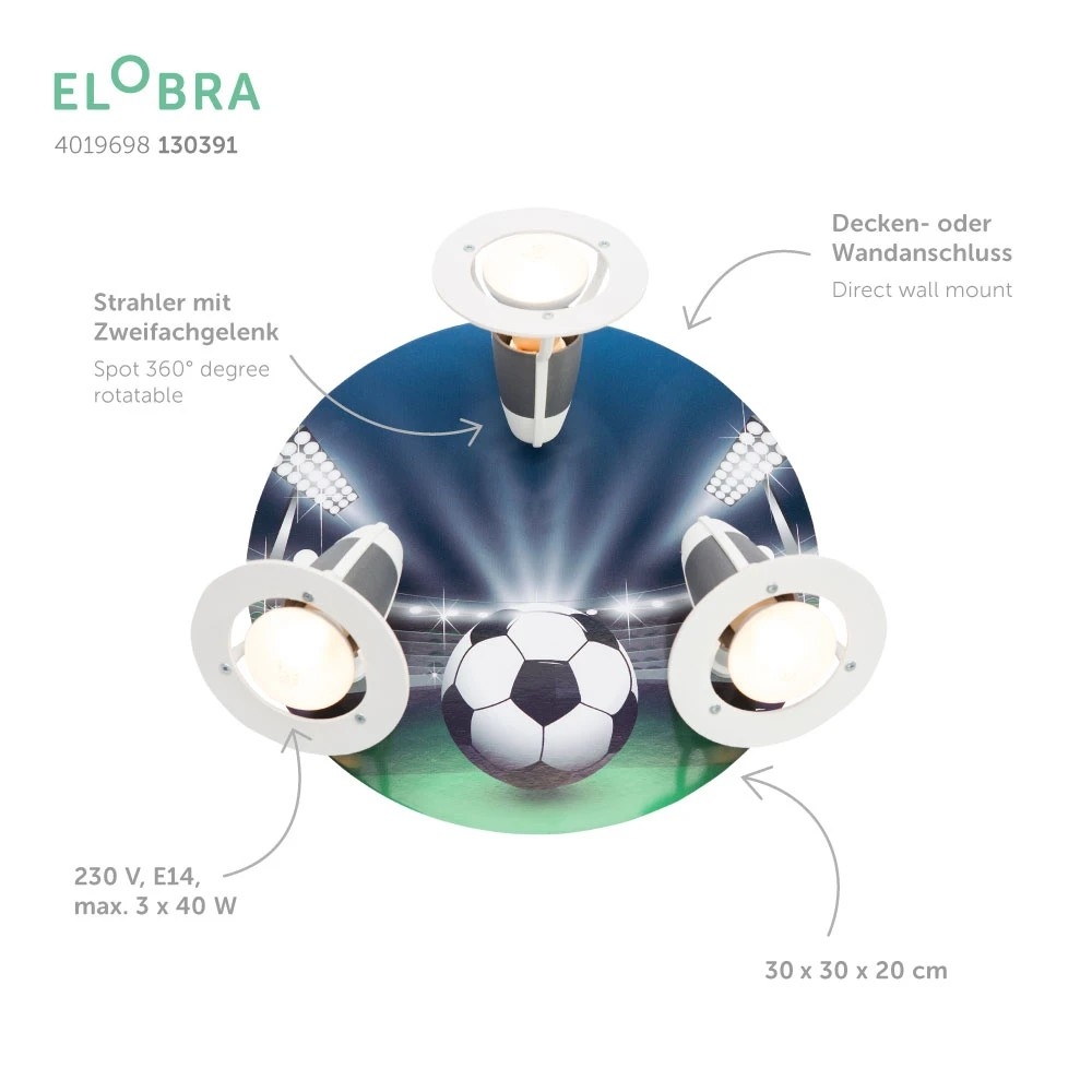 Whether as a main light source or for targeted lighting of specific areas, the SOCCER ARENA ceiling light offers versatile applications. Create individual lighting accents and create a cozy atmosphere in your home.