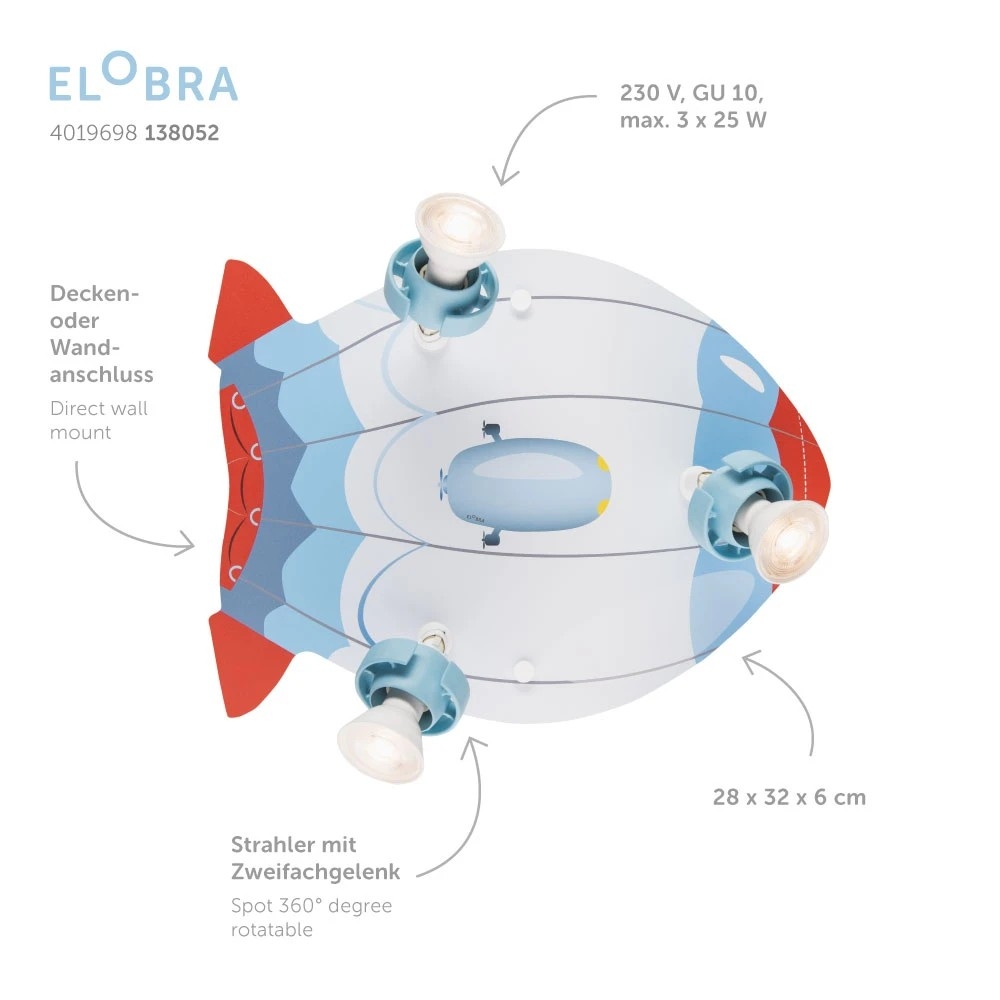 Rondell LUFTSCHIFF TECHNIKWELT, 3x GU10, blue/red