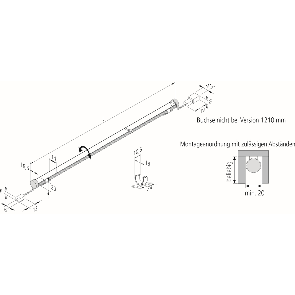 Rotatable, round LED surface moount luminaire LED PIPE F, homogeneous area light, 61cm, 11.4W 3000K