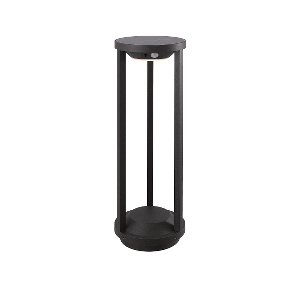 Solar LED floor lamp PILASTRO, IP54, 50cm, 2W 3000K, with PIR sensor + ground spike, 3 modes, aluminum, anthracite / satin