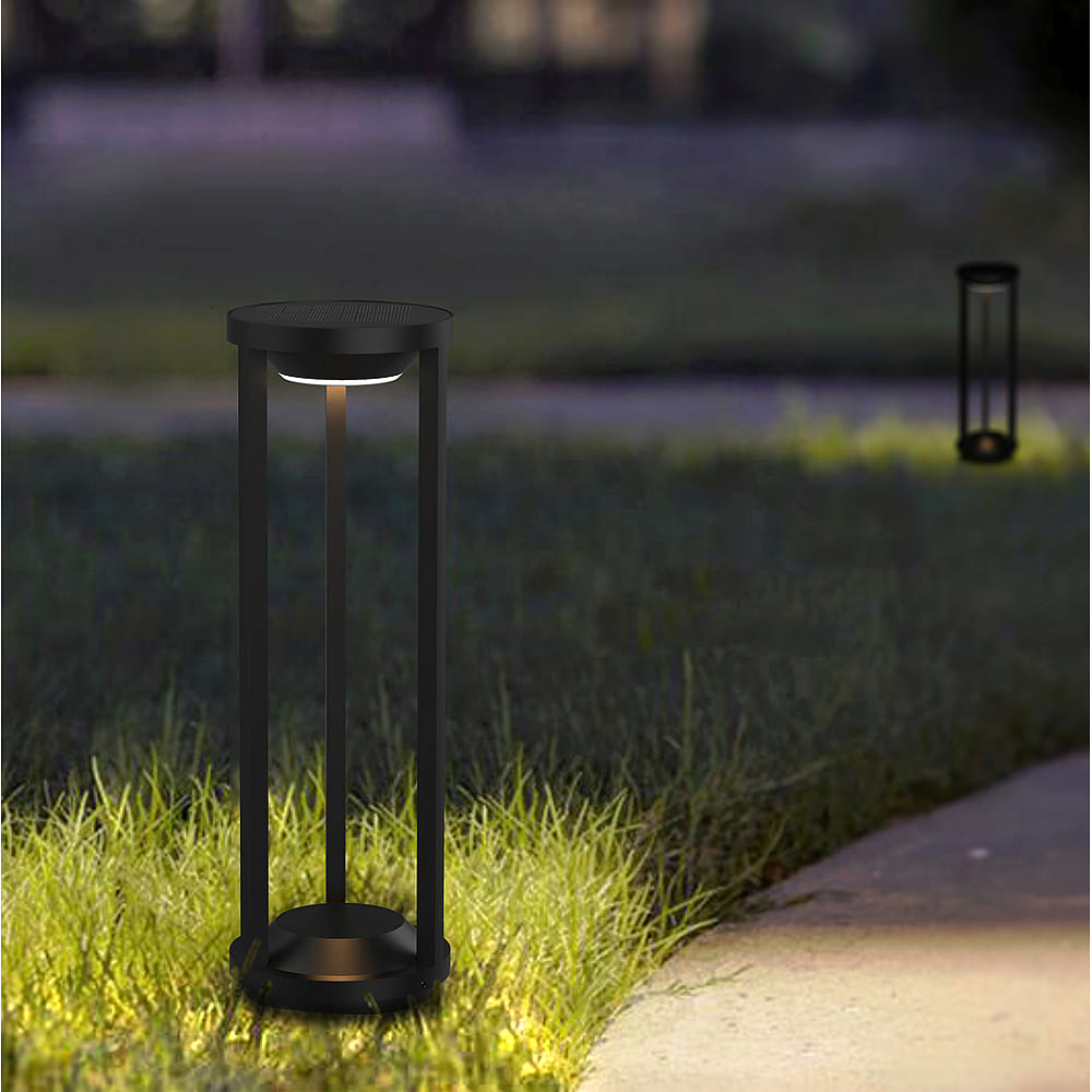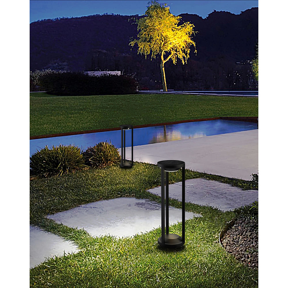 The Solar LED floor lamp PILASTRO has a built-in LED bulb. The color temperature is 3000K and the color rendering index is 82Ra. With a luminous flux of 23 / 115 / 230lm, the lamp provides glare-free downward light output.