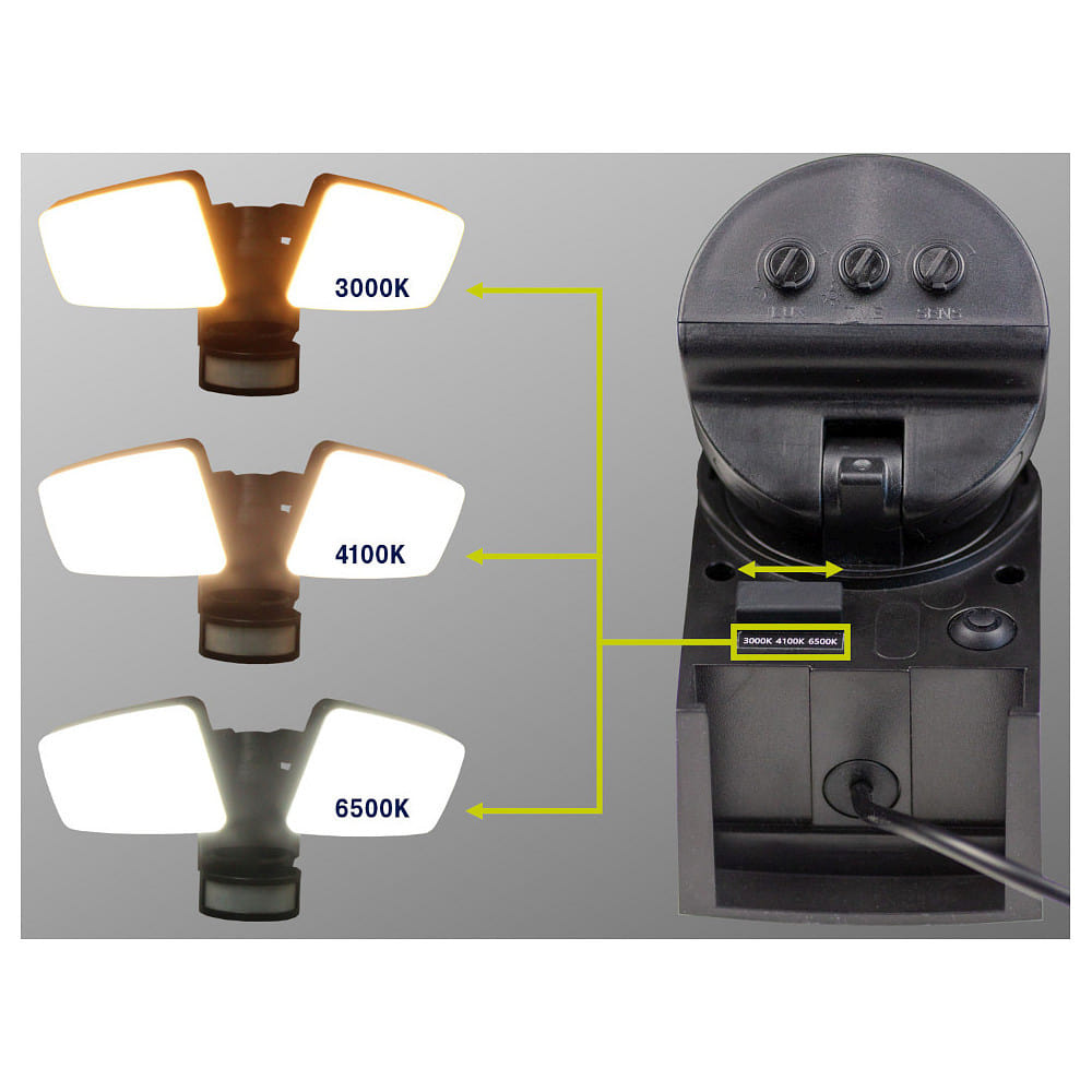 The spotlight offers the possibility to adjust the light color as needed between warm white (3000K), neutral white (4100K), and cool white/daylight white (6500K). With a luminous flux of 1200lm and a range of 10 meters, it provides bright lighting in various areas outdoors.