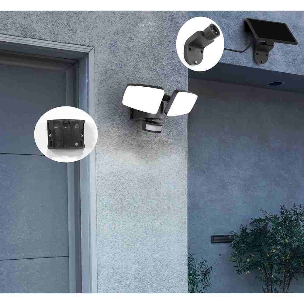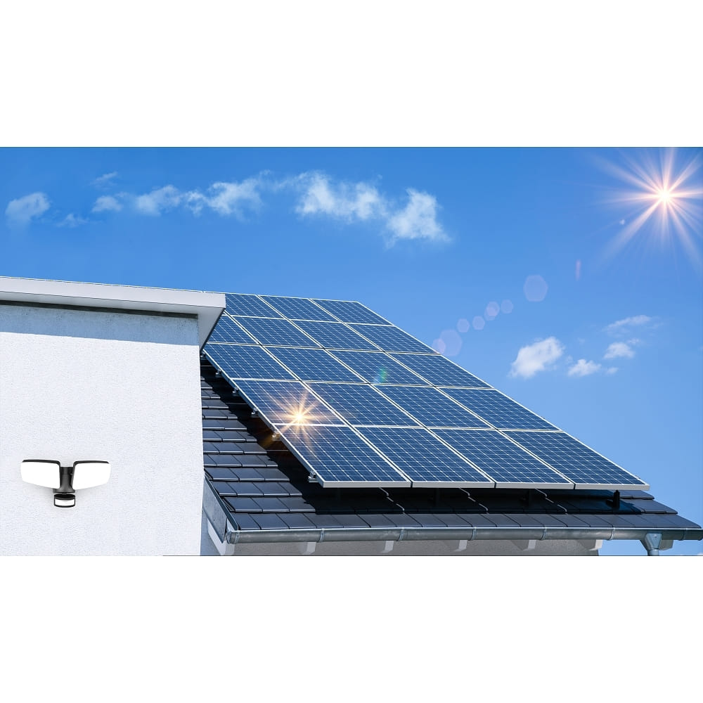The Solar LED Double Floodlight DUPLEX does not require a power connection as it is autonomously charged via a solar panel. Thanks to the integrated sensors and switches, the settings for motion detection and twilight can be individually adjusted. It also has a large action radius with separately swiveling and rotating light wings.