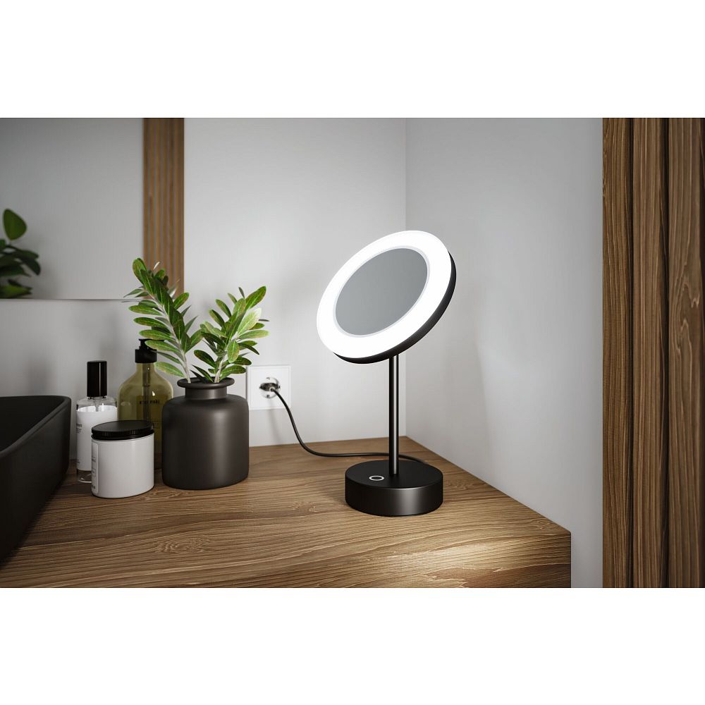 Spiegel met verlichting MASUA IP44 - 3X ZOOM 3-voudig, rond, CCT Switch, met stekker, instelbaar IP44 / IP20, zwart mat