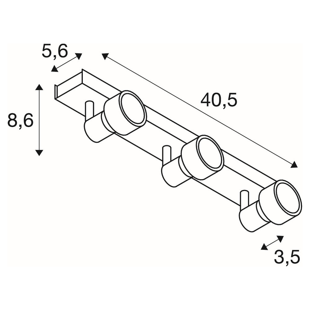 De wandplafondlamp PURI 3 is een elegante en moderne lichtbron met drie GU10 fittingen. Met een gewicht van 0,98 kg en afmetingen van 40,00 x 5,60 x 8,60 cm, en een hoofddiameter van 3,50 cm, past hij perfect aan het plafond of de muur.