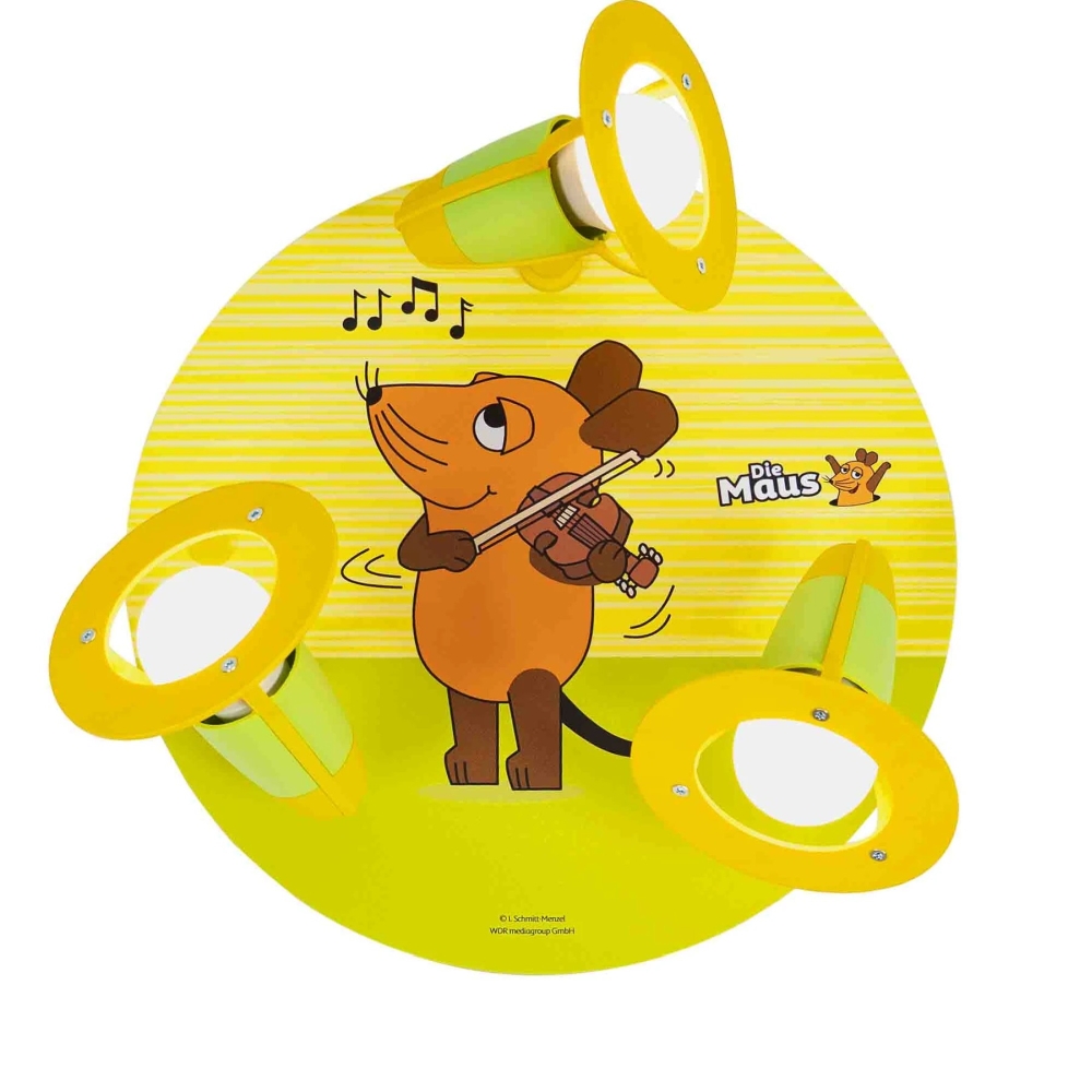 The Spot Rondell MAUS by Elobra is a stylish ceiling light that operates with three E14 light bulbs. With a maximum power consumption of 3x 40W, this light provides pleasant illumination in your space. The colors green and yellow give the Spot Rondell MAUS a modern and fresh design.