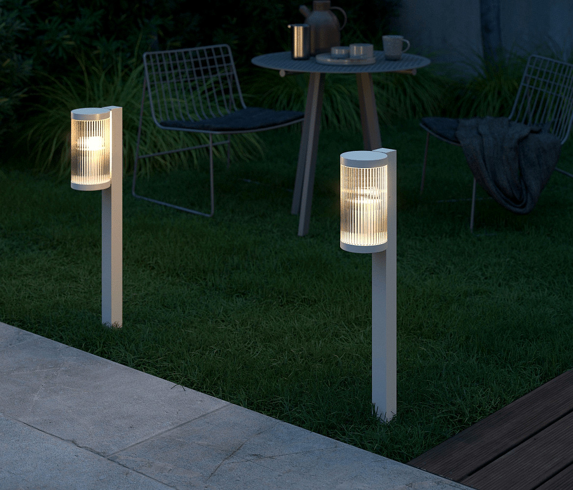 De zandkleurige aluminium behuizing van de lamp geeft een moderne en verfijnde uitstraling die elke omgeving verbetert. Het subtiele kleurenpalet integreert harmonieus in uw tuin of terras.