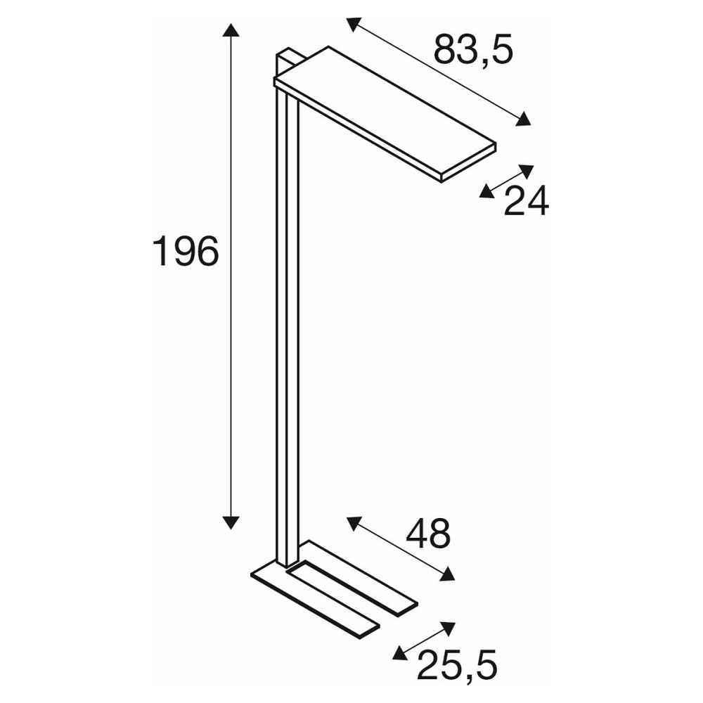 De vloerlamp heeft afmetingen van 83,5 x 24 x 196 cm en is gemaakt van aluminium en staal. Het is voorzien van een aanraakregelaar om de helderheid individueel aan te passen. Met een stralingshoek van 75-115° en een lichtrendement van 130lm/W, zorgt het voor gelijkmatige verlichting in de kamer.