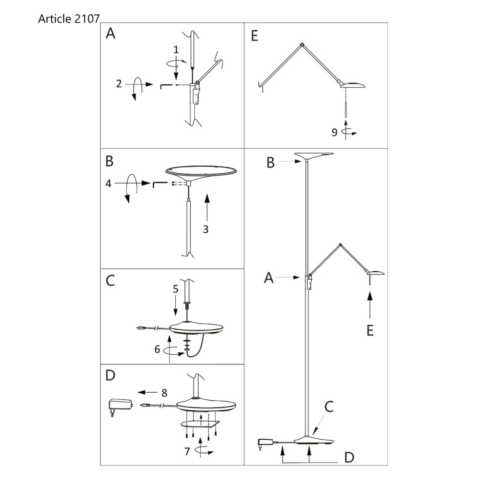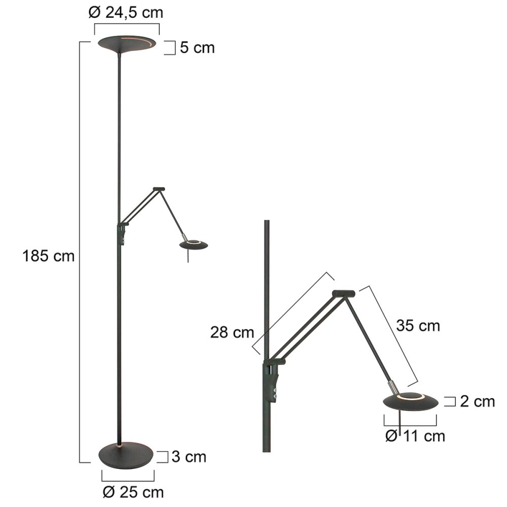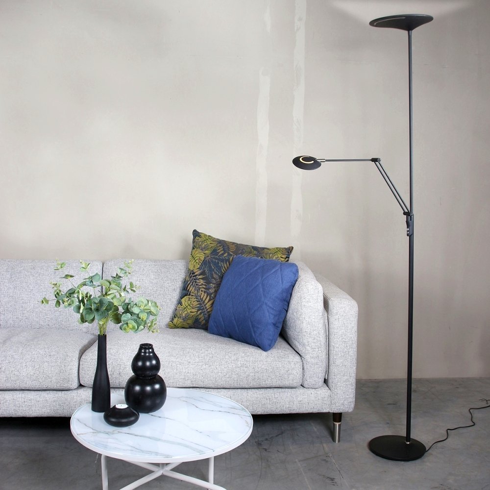 Steinhauer Floor lamp ZODIAC LED, 2 flames, with reading arm, black