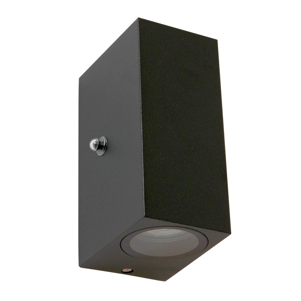 Outdoor wall light LOGAN, IP54, Up/Down, with twilight sensor, square, including 2x GU10 LED 4W 2700K 345lm (switchable), Black