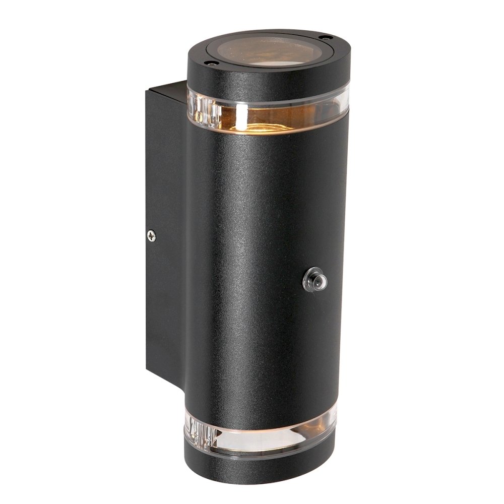 LED outdoor wall light PANAY, IP44, Up/Down, with twilight sensor, incl. 2x GU10 LED 4W 2700K 345lm, matt black