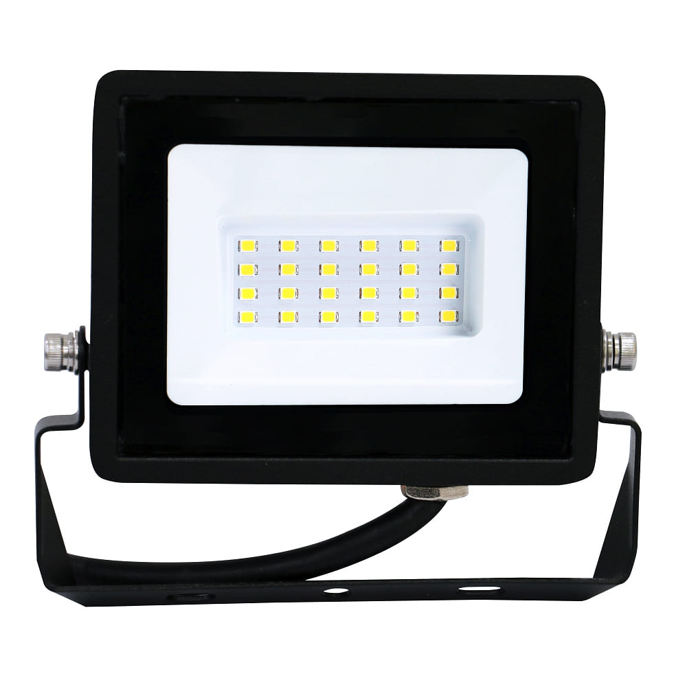 De LED-projector heeft een IP65-beschermingsklasse, die hem beschermt tegen stof en water. Met een UV-bestendige witte reflector en gehard glas is het bijzonder robuust en duurzaam, ideaal voor buitengebruik.