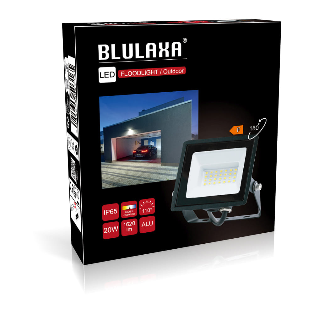De LED-projector van Blulaxa biedt uitstekende verlichting met een brede lichtbundelhoek van 110°. Met een energieverbruik van 20W en een lichtstroom van 1620lm, biedt het efficiënte verlichting in verschillende toepassingen.