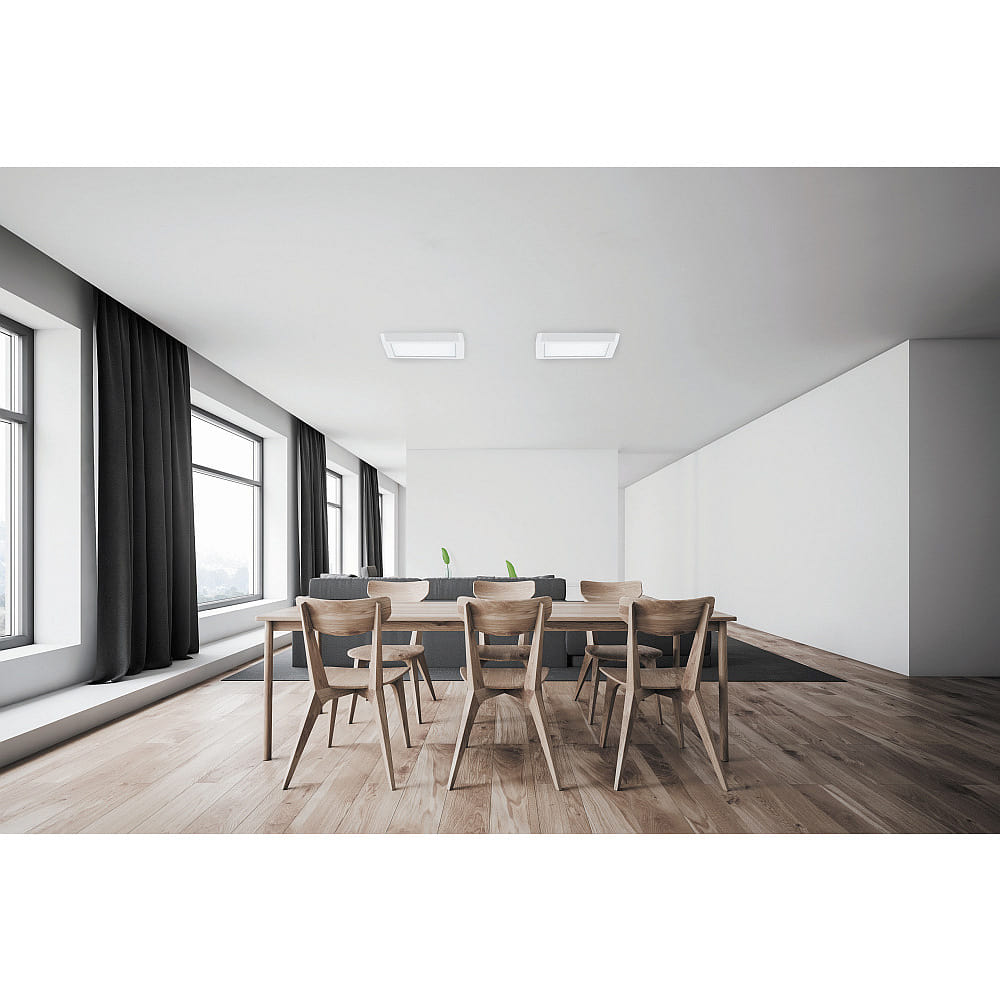 The LED surface-mounted/recessed light FLEX PRO with dimensions of 23.5 x 23.5 cm offers a flexible lighting solution. With a power consumption of 16 watts, it produces a luminous flux of 1920 lumens, ensuring bright and even illumination. Thanks to its square design, the light fixture blends modernly and unobtrusively into various room concepts. It is suitable for both surface-mounted and recessed installation and fits optimally on different ceiling cutouts thanks to the adjustable installation opening from 6.5 to 20.5 cm.