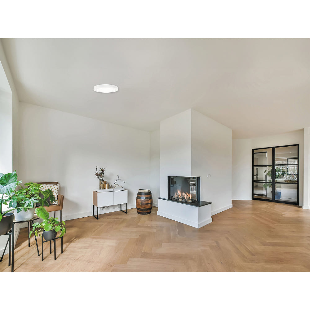 A special highlight of this light is the integrated light color switch, which allows the color temperature to be selected in three stages: 3000K (warm white), 3500K (warmer neutral white), and 4000K (neutral white). This enables the lighting atmosphere to be easily adapted to the specific use of the room. With a luminous flux of 1920 lumens and a luminous efficacy of 120 lumens per watt, the fixture produces bright and pleasant light that ensures homogeneous and wide-area light distribution. The color rendering index of over 80Ra provides natural colors and a comfortable ambiance.