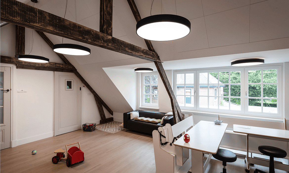 The suspension set for the LED ceiling light MEDO is 150 cm long and has 5 cores. It is dimmable from 1-10V to adjust the light intensity as needed.