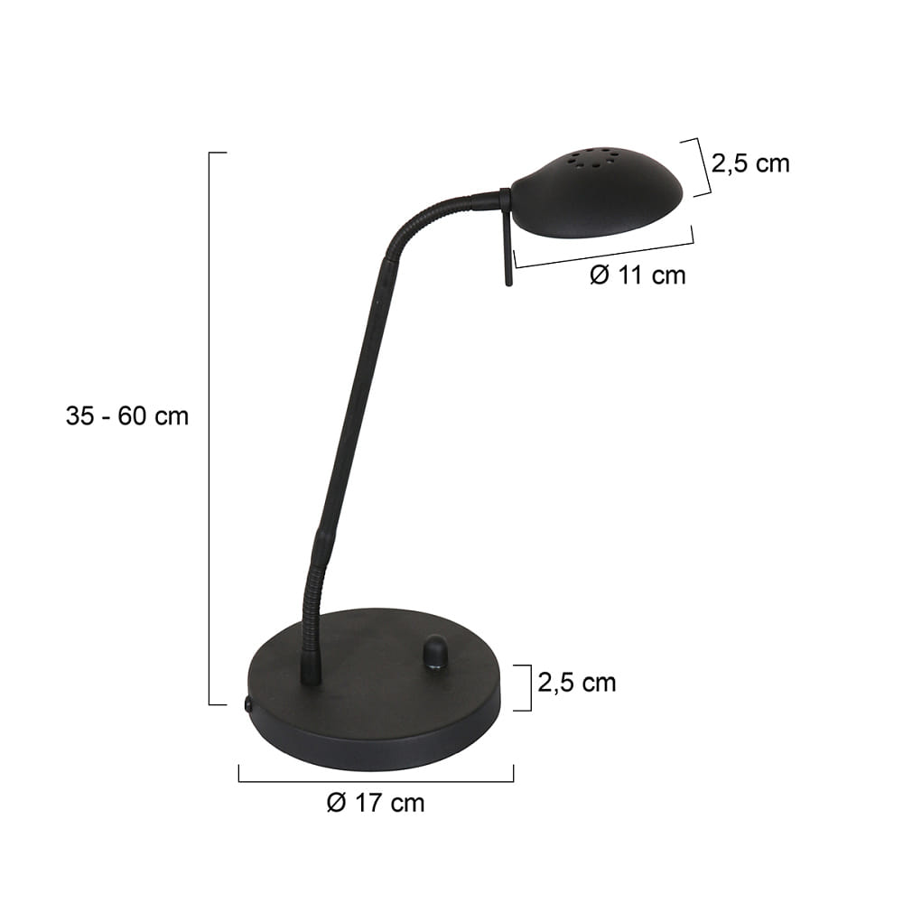 table lamp BIRON with switch, with flex arm IP20, black matt dimmable
