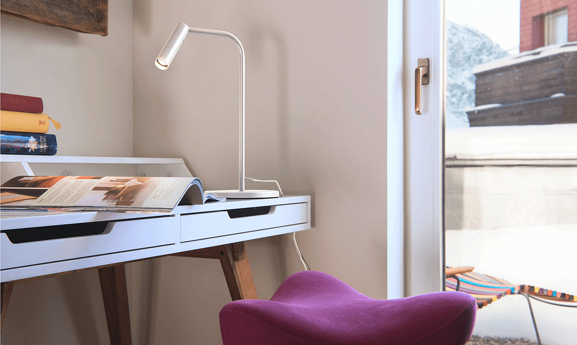 Met zijn draaibare en kantelbare ontwerp is de KARPO FL tafellamp ideaal voor gebruik op meubels of tafels. Met een gewicht van 1,454 kg en een voedingskabel van 230 cm, is de lamp flexibel en gemakkelijk te installeren.