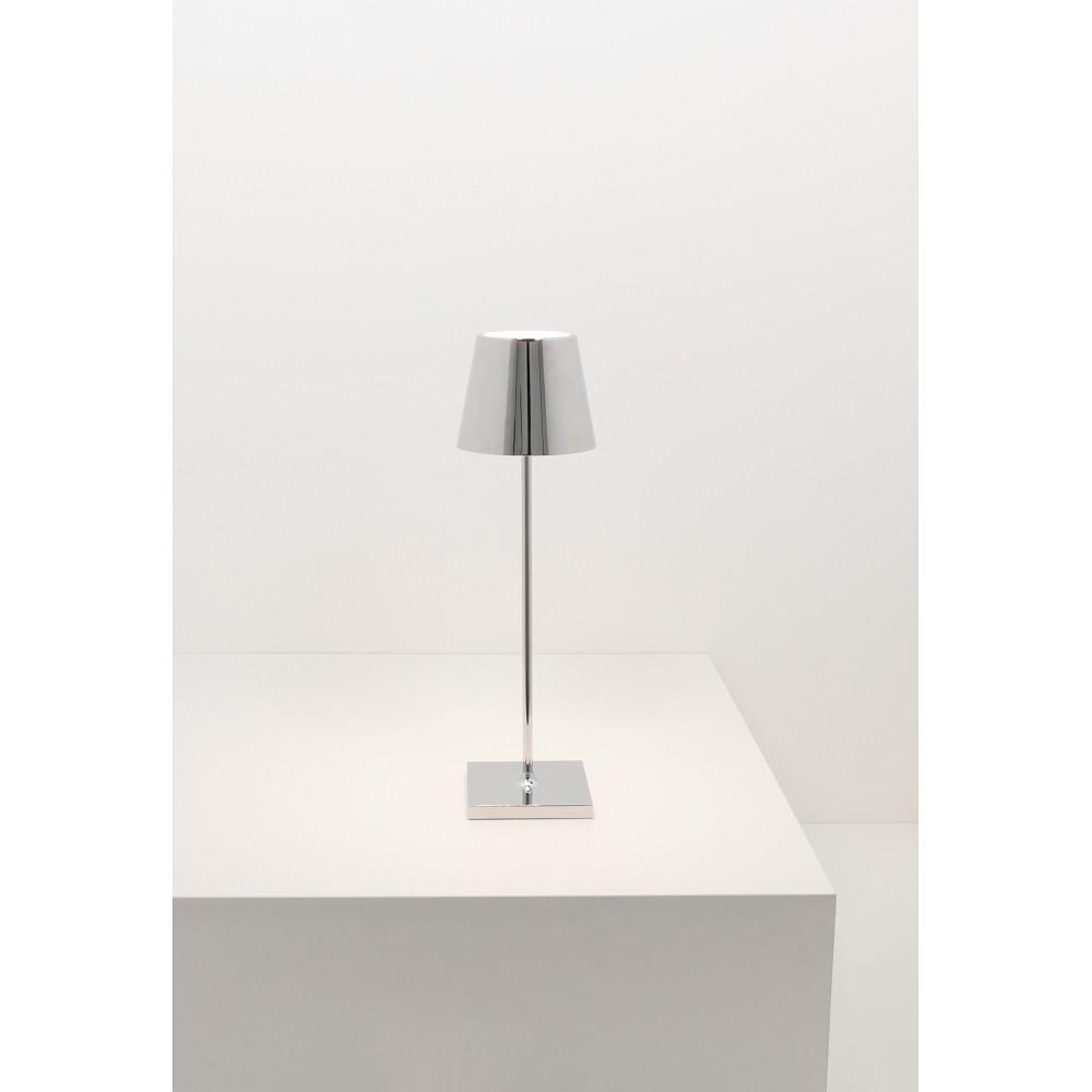 De tafellamp POLDINA PRO maakt indruk met zijn hoogwaardige design in glanzend chroom. De materialen aluminium spuitgietwerk en polycarbonaat zorgen voor stabiliteit en duurzaamheid. Dankzij zijn IP65 beschermingsklasse is de lamp ook beschermd tegen waterspetters en kan binnenshuis worden gebruikt zonder zorgen.