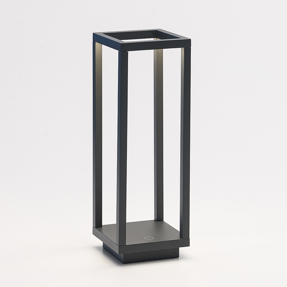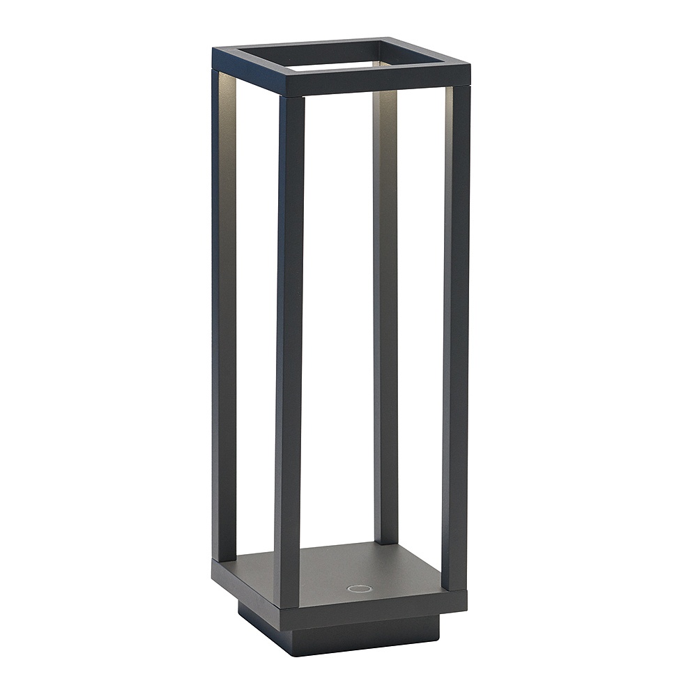 Het vierkante design van de lamp in donkergrijze tinten past perfect op elke tafel. De lamp heeft een afmeting van 10x10x29,4 cm, de basis heeft een diameter van 7,8 cm en het oplaadstation heeft een diameter van 7,5 cm. Met een gewicht van slechts 0,9 kg is de tafellamp gemakkelijk te verplaatsen.