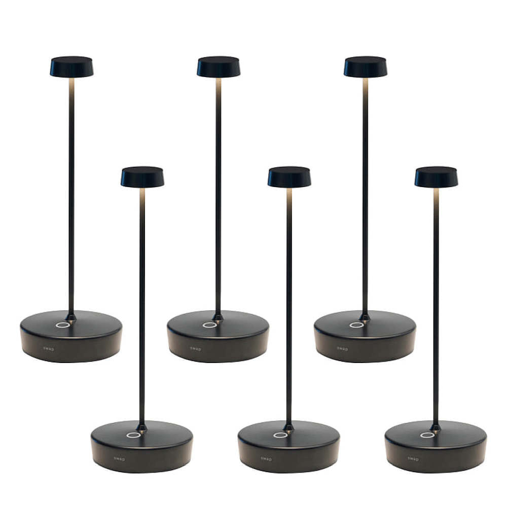 Tafellamp op batterijen SWAP set van 6 IP65, zwart dimbaar