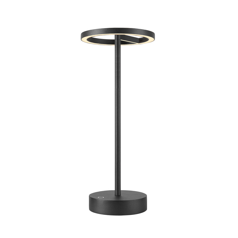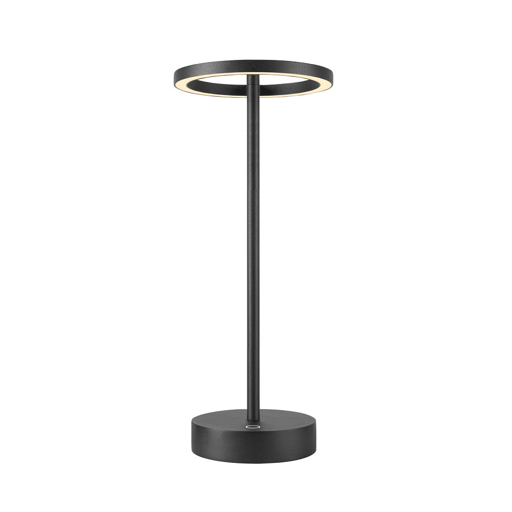 Tafellamp op batterijen VINOLINA ONE met aanraakdimmer, ring vorm IP54, zwart dimbaar