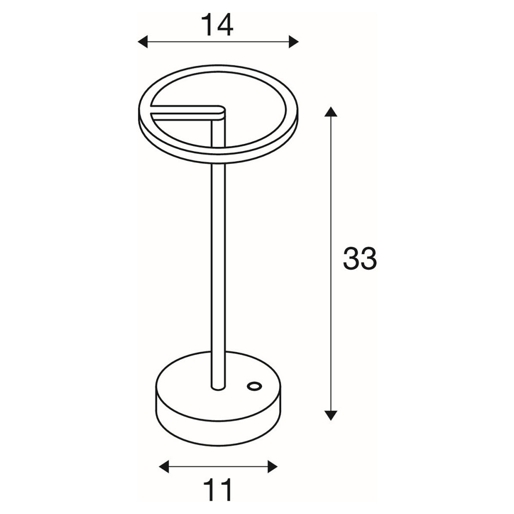 De externe LED tafellamp met batterij VINOLINA ONE van SLV is een echte eyecatcher. Met zijn moderne ringvormige design en compacte afmetingen van Ø 14 cm past hij perfect op elk tafelblad. Dankzij de ingebouwde touch dimmer kan de lichtsfeer eenvoudig worden aangepast. De lamp is voorzien van een handige oplaadstation voor het gemakkelijk opladen van de batterij.
