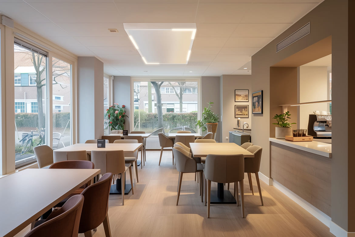 The interior dimensions of the TRACK48 light frame are 32 x 150 cm. This provides enough space for the integration of 48V lights and acoustic absorbers. The light color of the frame is white, creating a bright and friendly atmosphere.