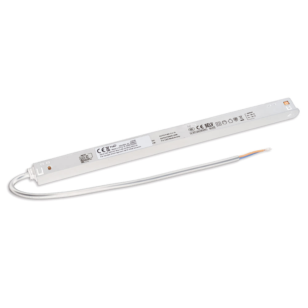 The Inline Transformer FLAT from ISOLED is specially designed for the NV rail system TRACK48. It is directly mounted onto the rail and operates at a voltage of 220-240V AC with a secondary output voltage of 48V DC. With a power of 100W, this transformer is switchable and ensures efficient power supply.