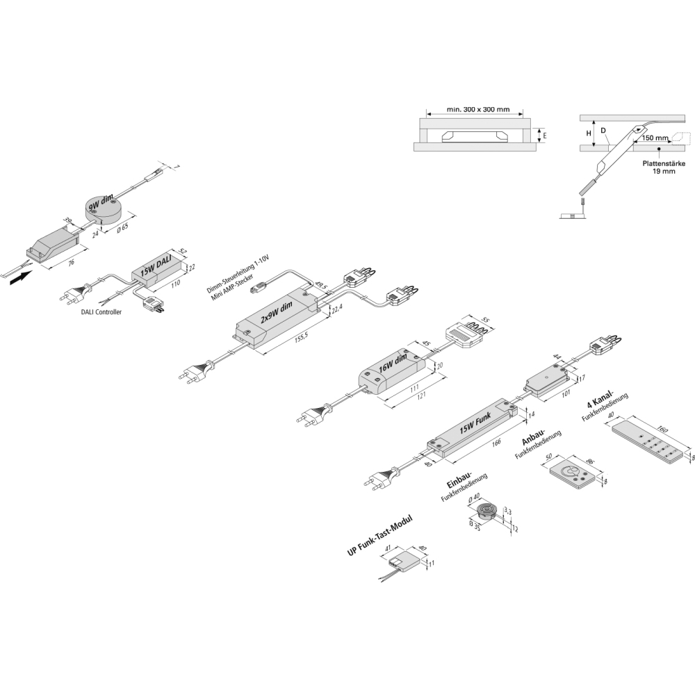 Transformer LED 350/15W radio with 3-fold, distributor incl. UP radio push-button module and controller