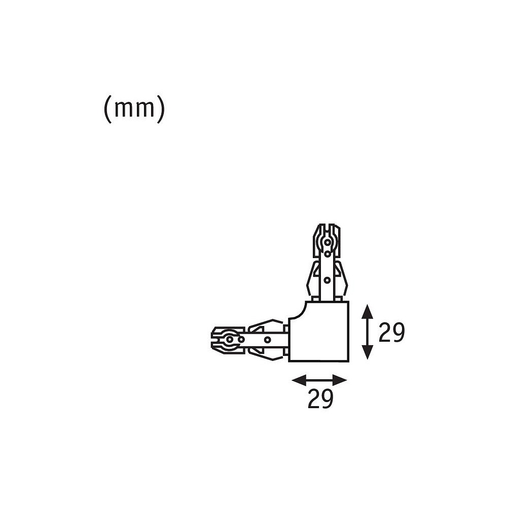 The URail L-connector rigid has a protection class 1 and weighs only 0.047kg. The size of the connector is W/H/D: 6.2/1.8/6.2 cm. In addition, the connector has undergone a glow wire test at 850°C to ensure the highest safety standards.