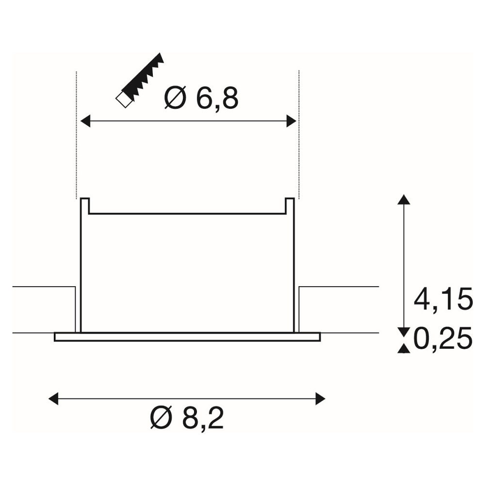 De afmetingen van de inbouw plafondlamp zijn Ø 8,2 cm in lengte, breedte en hoogte, met een installatieopening van 6,8 cm in diameter. De IP20 beschermingsklasse zorgt voor veilig gebruik in verschillende binnenruimtes.
