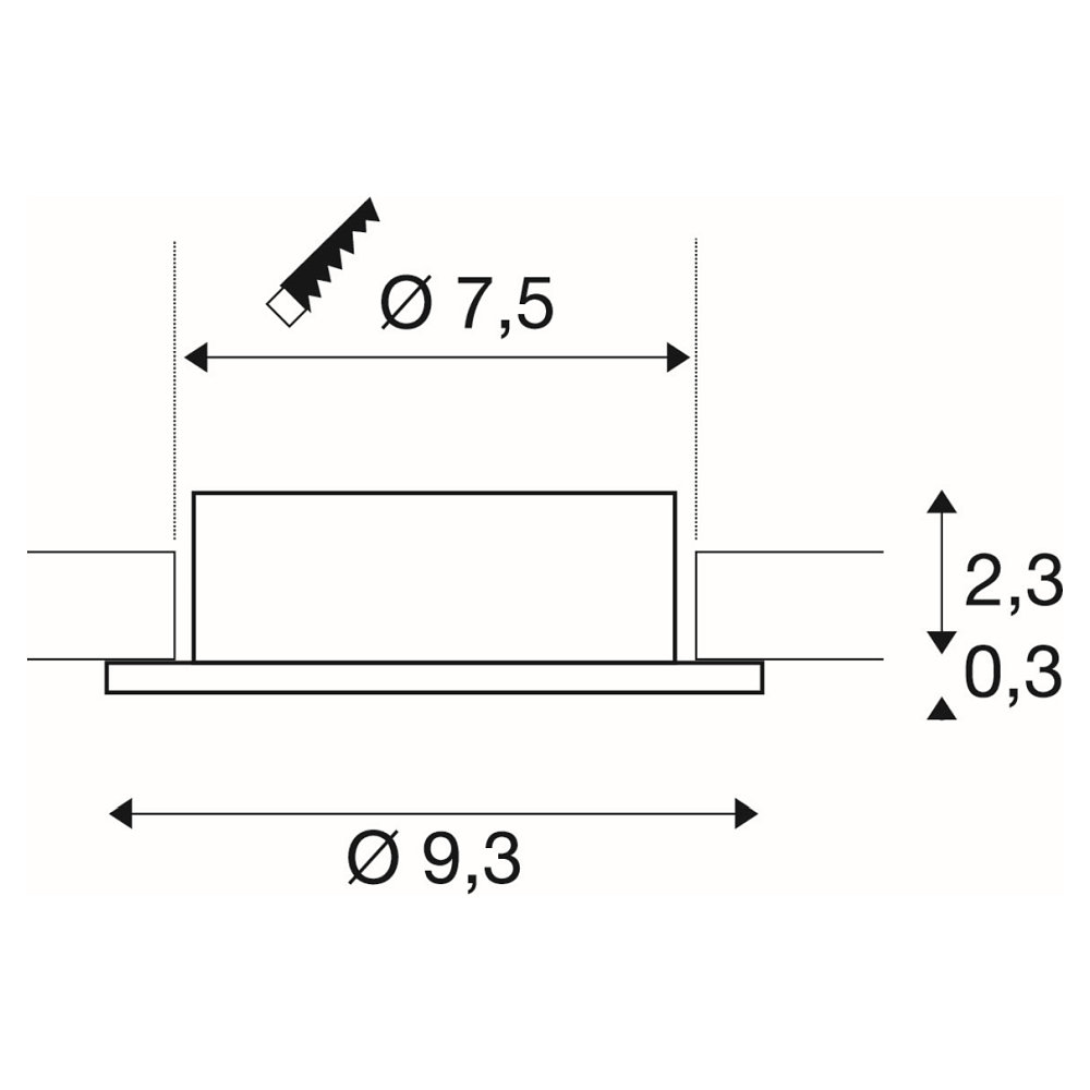 De inbouw plafondlamp NIEUWE TRIA® 75 is een ronde lamp met een IP20 beschermingsgraad. Het heeft een inbouwdiameter van 7,5 cm en is gemaakt van aluminium. De afmetingen zijn Ø 9,3 cm, L 9,3 cm, H 9,3 cm, D 2,6 cm en het weegt 0,08 kg.