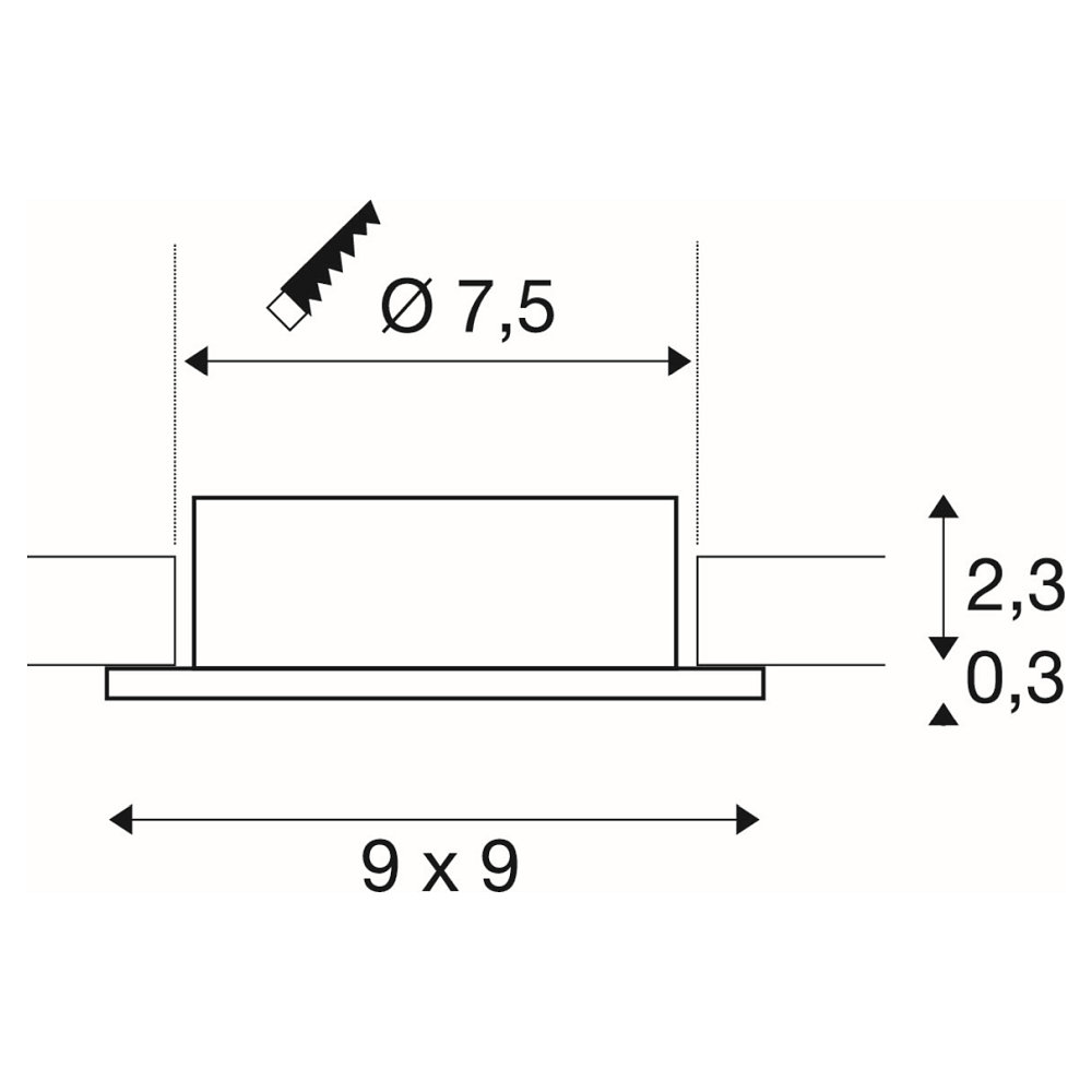 Met afmetingen van 9x9x2,6 cm en een gewicht van slechts 0,09 kg is de inbouw plafondlamp NEW TRIA® 75 bijzonder compact en discreet. Dit maakt het ideaal voor ruimtes waar discreet licht gewenst is.