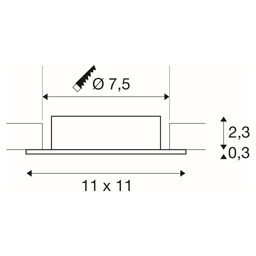 Het vierkante ingebouwde plafondlicht NEW TRIA® 75 XL heeft een IP20-bescherming en is ideaal om in plafonds te worden geïnstalleerd. Met afmetingen van 11x11x2,6 cm en een gewicht van slechts 0,11 kg, is het bijzonder discreet en gemakkelijk te integreren in elk kamerconcept.