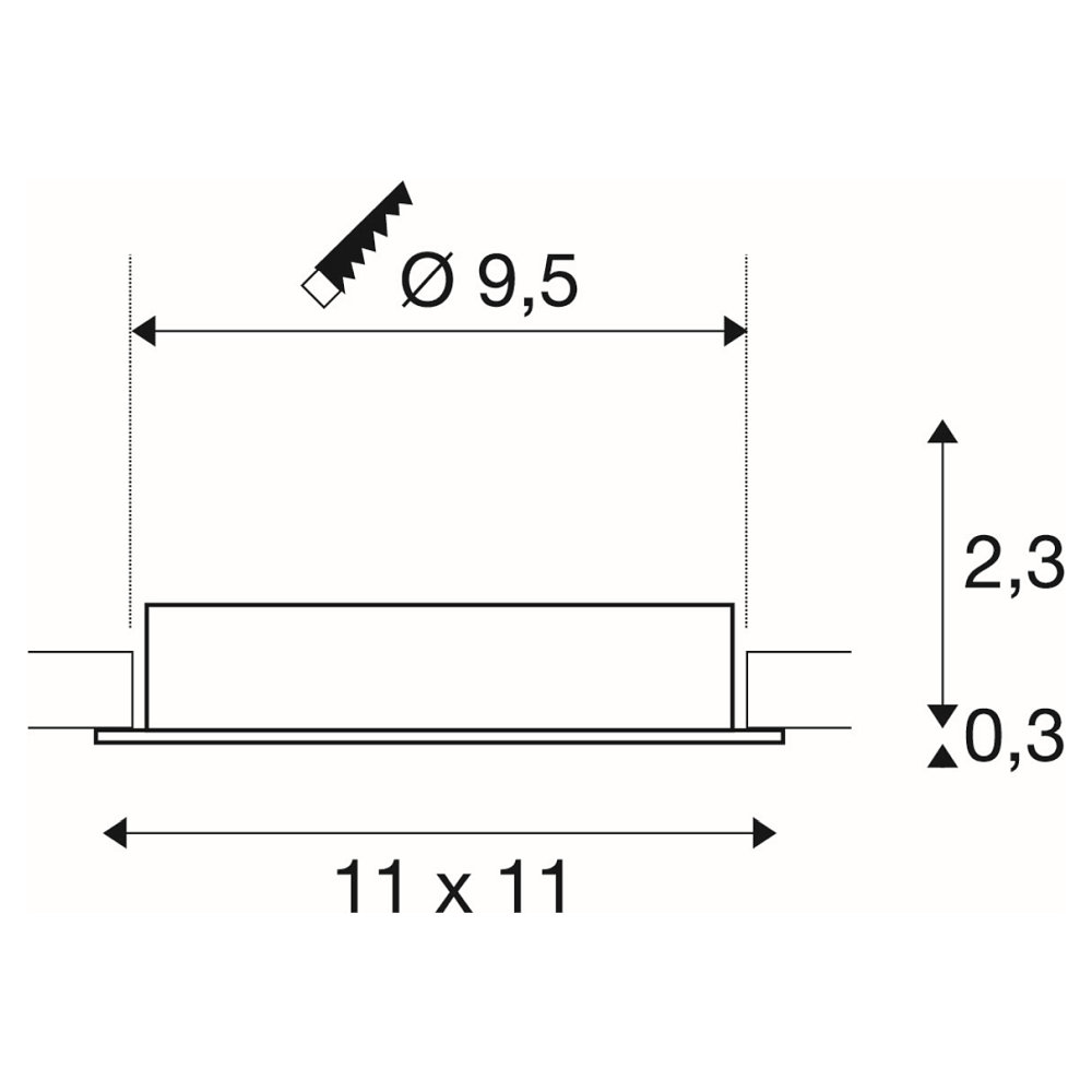 De nieuwe vierkante inbouw plafondverlichting TRIA® 95 heeft een IP20 beschermingsklasse, waardoor deze ideaal is voor gebruik binnenshuis. Met afmetingen van 11x11x2,6 cm en een gewicht van slechts 0,12 kg, kan deze verlichting eenvoudig en comfortabel worden geïnstalleerd.