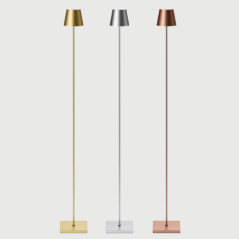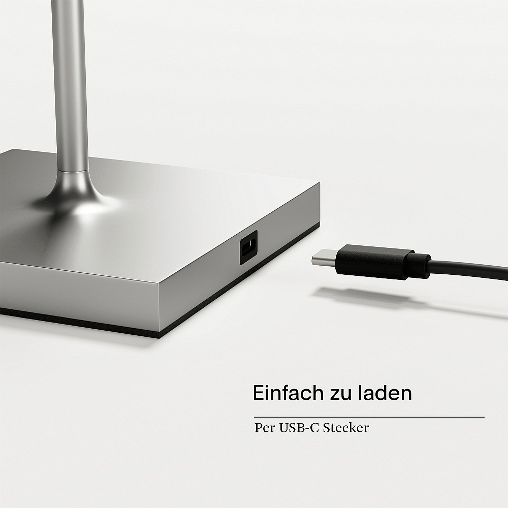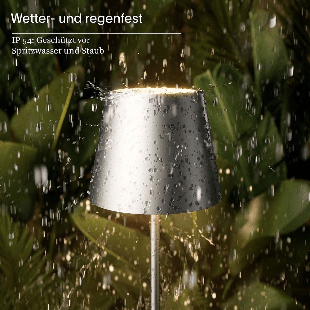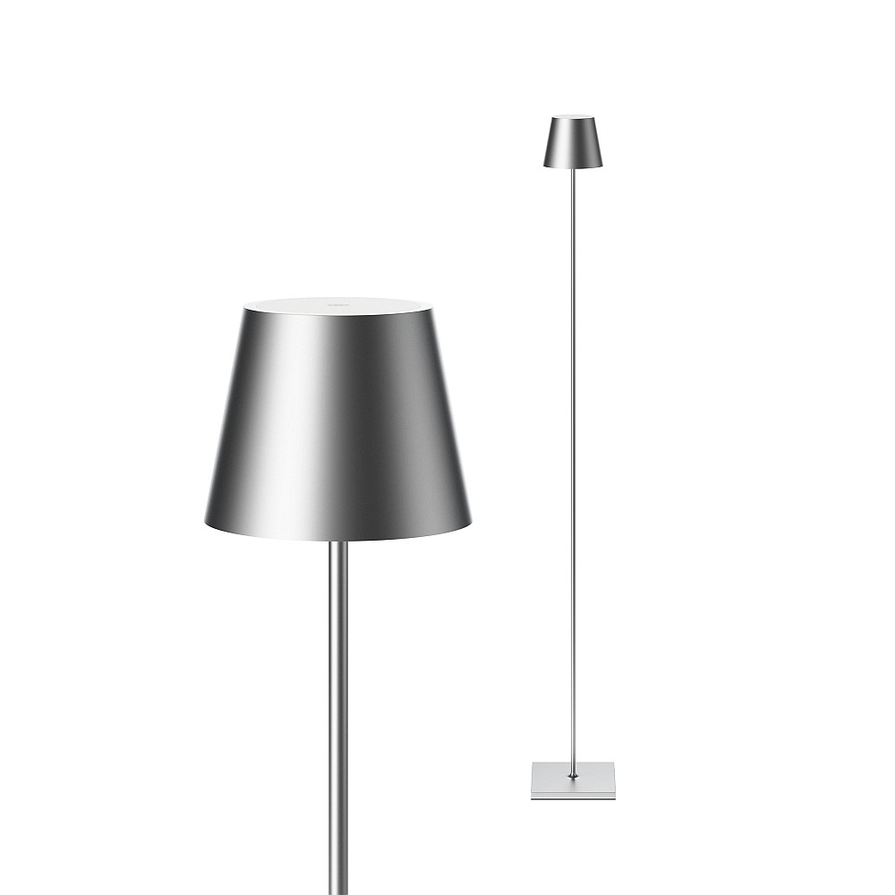 Vloerlamp op batterijen NUINDIE USB-C rond IP54, zilver dimbaar