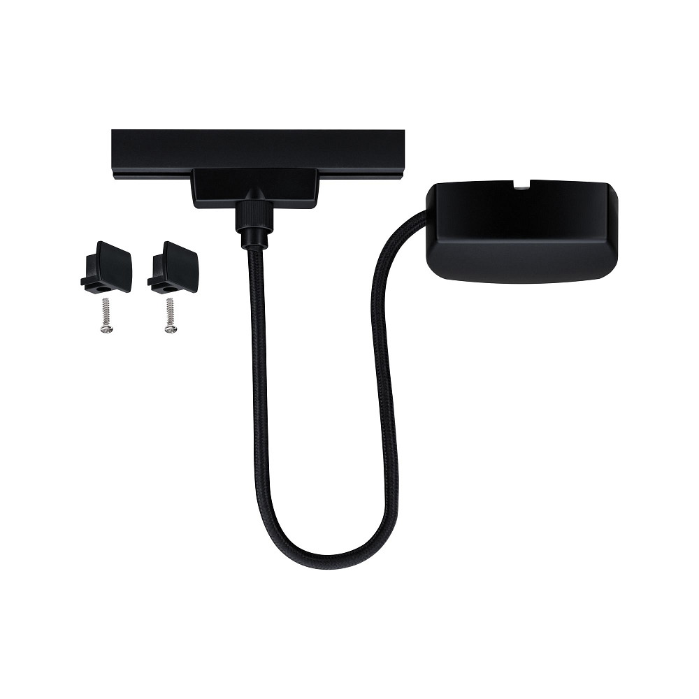 De stroomvoorziening via kabel heeft afmetingen L x B x D: 100 x 16,5 x 3 cm en weegt slechts 0,266 kg. Het is matzwart van kleur en is gemaakt van hoogwaardig plastic en metaal. De installatie is eenvoudig en veilig in het railsysteem.