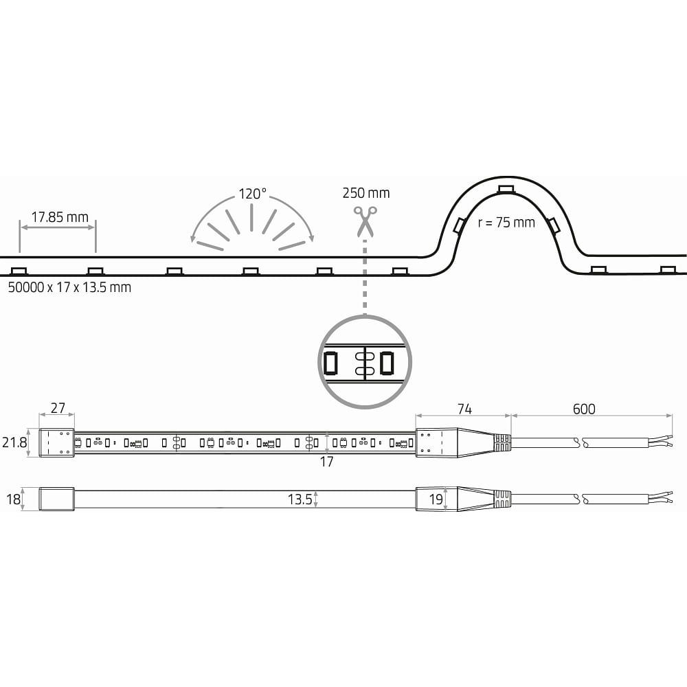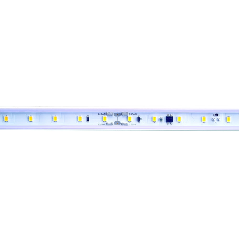 De LED-strip wordt geleverd met een open kabeluiteinde en werkt op een spanning van 230V AC. Met een stralingshoek van 120° en een lichtrendement van 88,89lm/W, biedt het een gelijkmatige en heldere verlichting. De UV-bescherming zorgt voor een lange levensduur van de LED's.