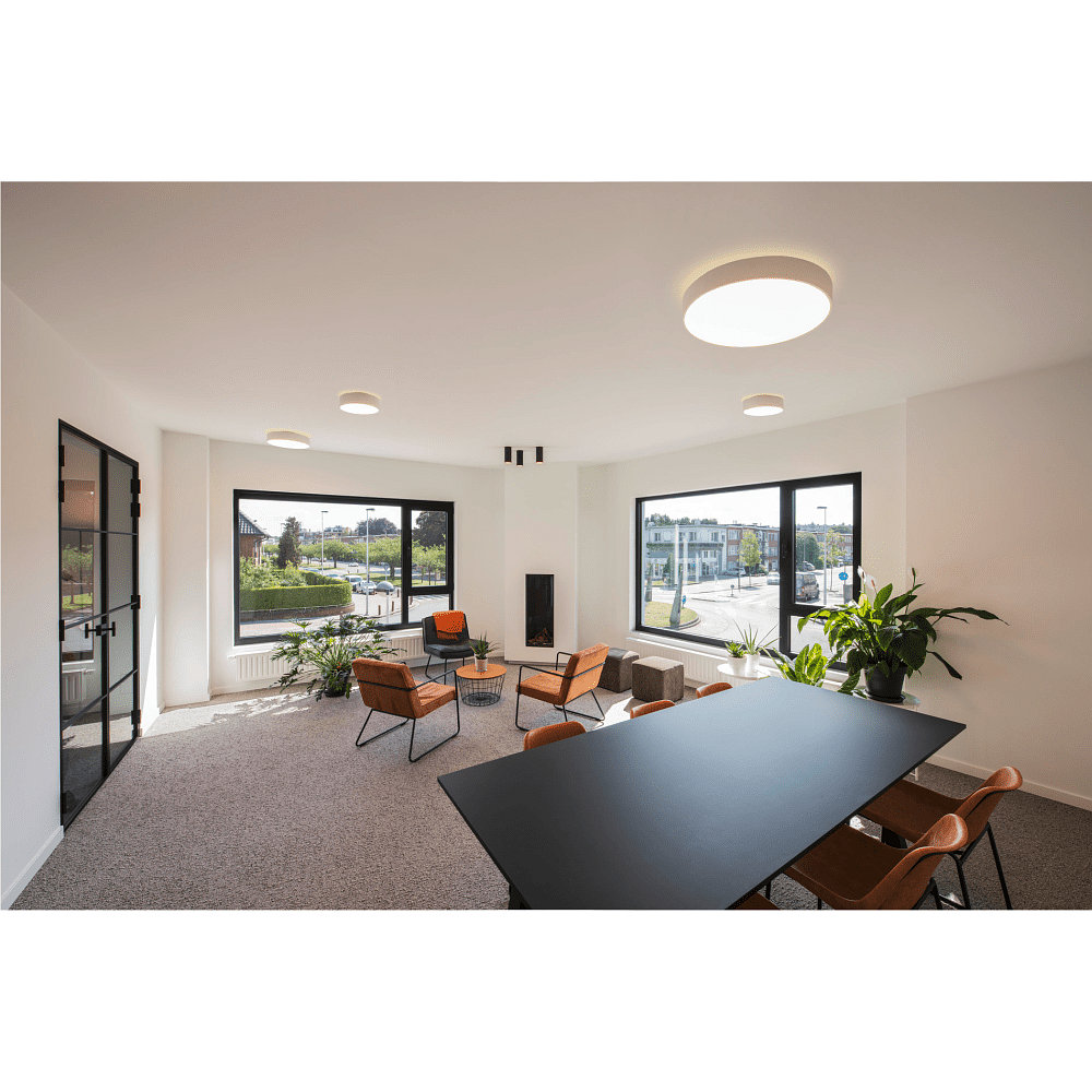 The LED Wall/Ceiling Light MEDO® PRO 60 is dimmable, allowing you to adjust the light intensity as needed. With a glare-free UGR<19 and a beam angle of 80°, it provides pleasant lighting without disturbing glare effects.