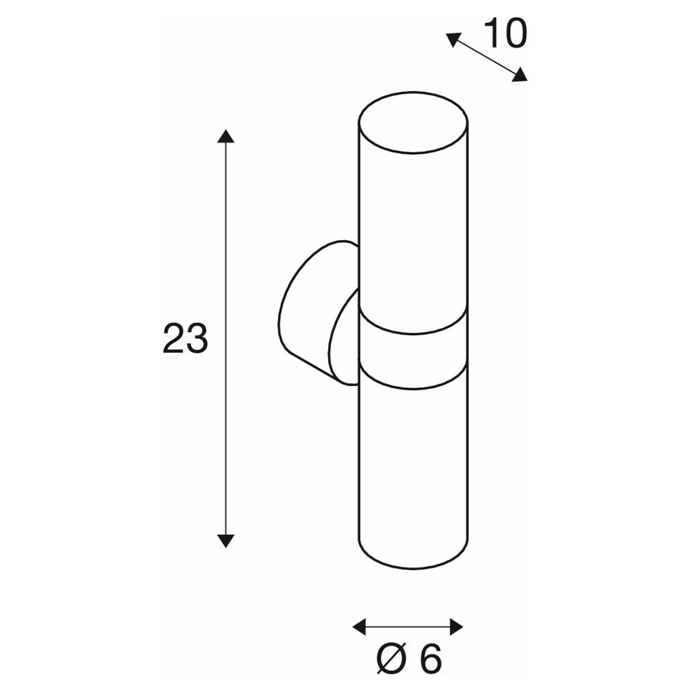 The operating voltage of the wall light is 230V~ and the size is Ø/ T: 8/ 4 cm. The material of the light is aluminum and it weighs a total of 0.8kg. The socket designation of the bulb is GU10 and the maximum permissible length is 9cm.