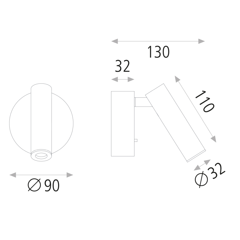 The wall spotlight ATRIA is ideal for wall mounting in indoor spaces. With a swivel range of 350° and a tilt range of 90°, the light can be flexibly aligned and directed.